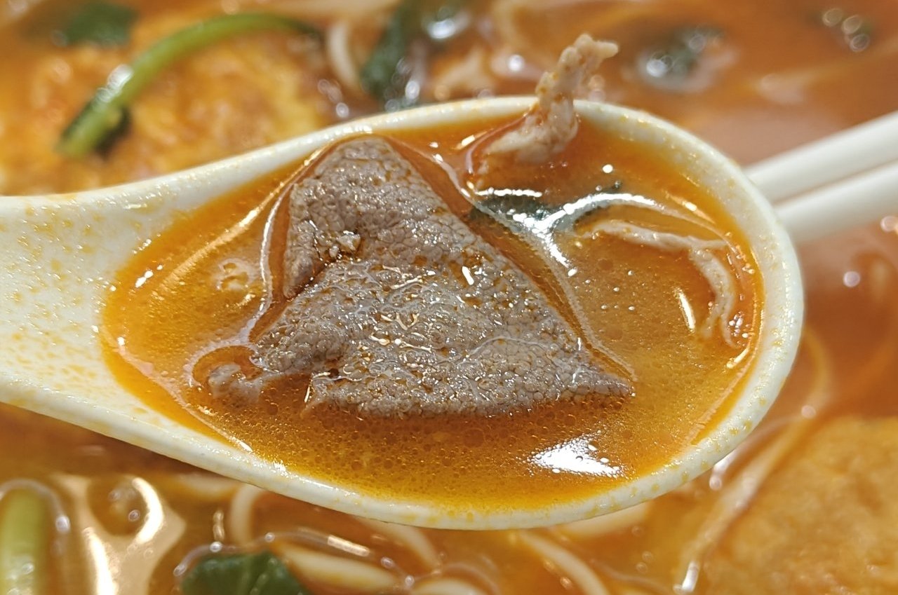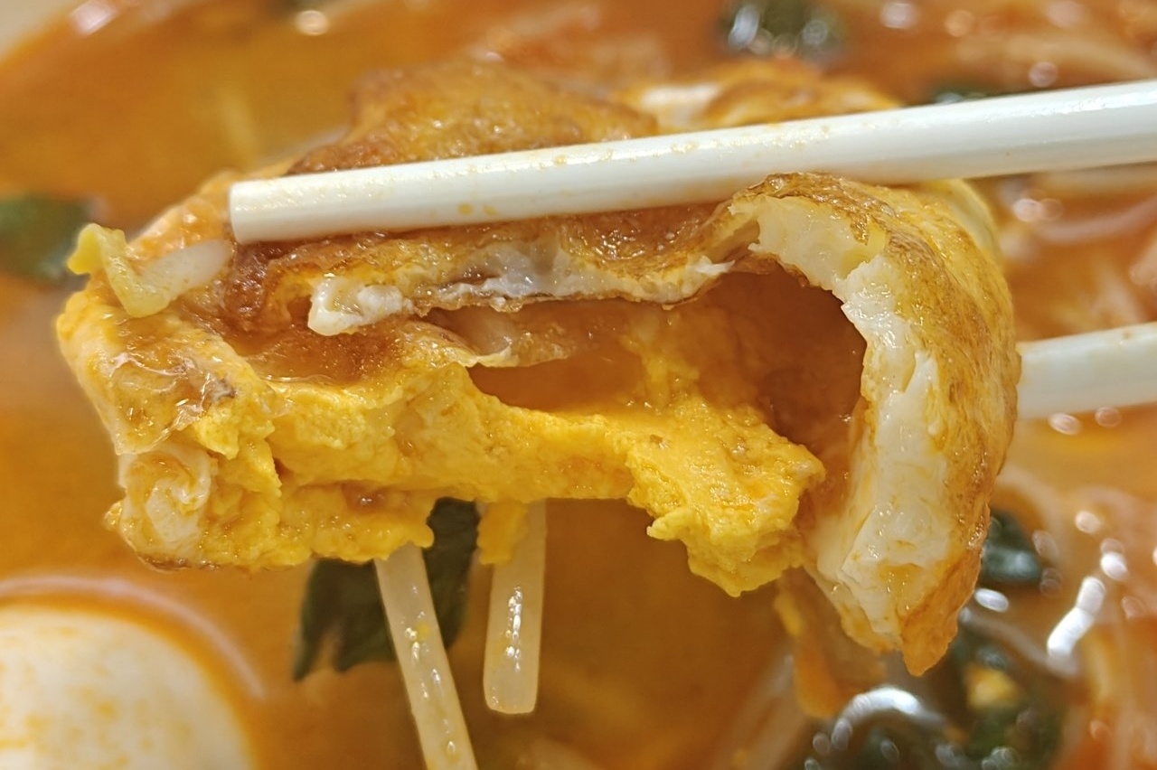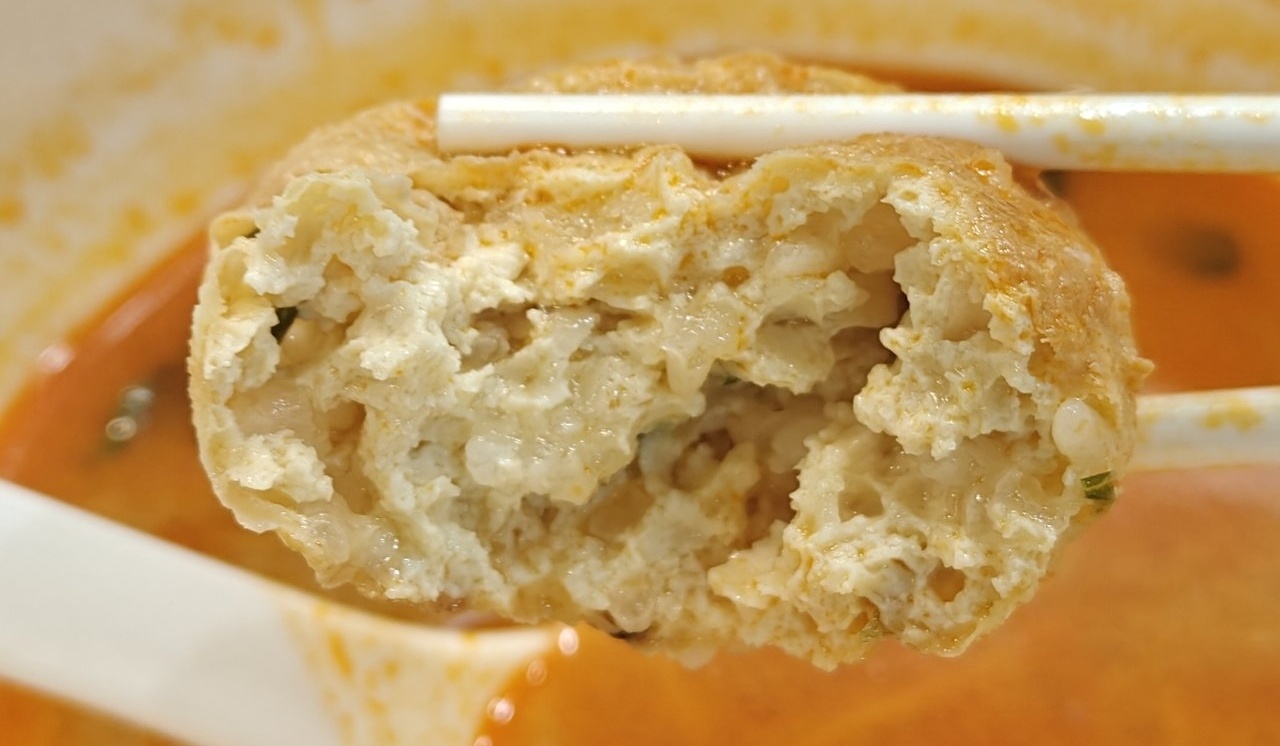 而由于面会淡一些,我觉得里面更好吃的是煎蛋和豆腐圆子,能够吸满汤的味道,咸鲜微辣,一口爆汁。
