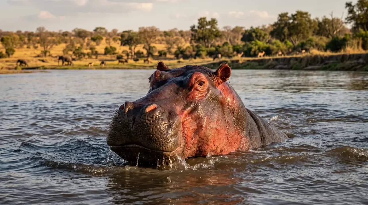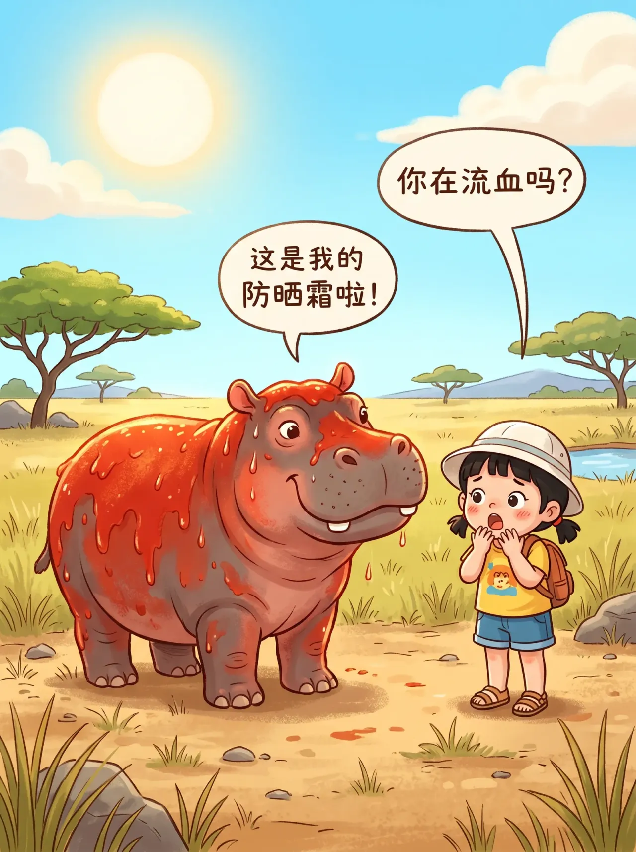 河馬長期待在強烈日照環境裏,皮膚又缺少毛髮遮擋,這層紅色分泌物能吸收紫外線,相當於給自己糊了一層天然防曬。所以下次你看到河馬上岸後越來越紅,別緊張,人家多半是在“自動上防曬”。