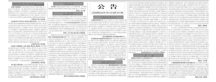 公开道歉时间和位置:今日(2026年4月21日)出版的《人民法院报》第三版下方(公告,(总第10074期))。