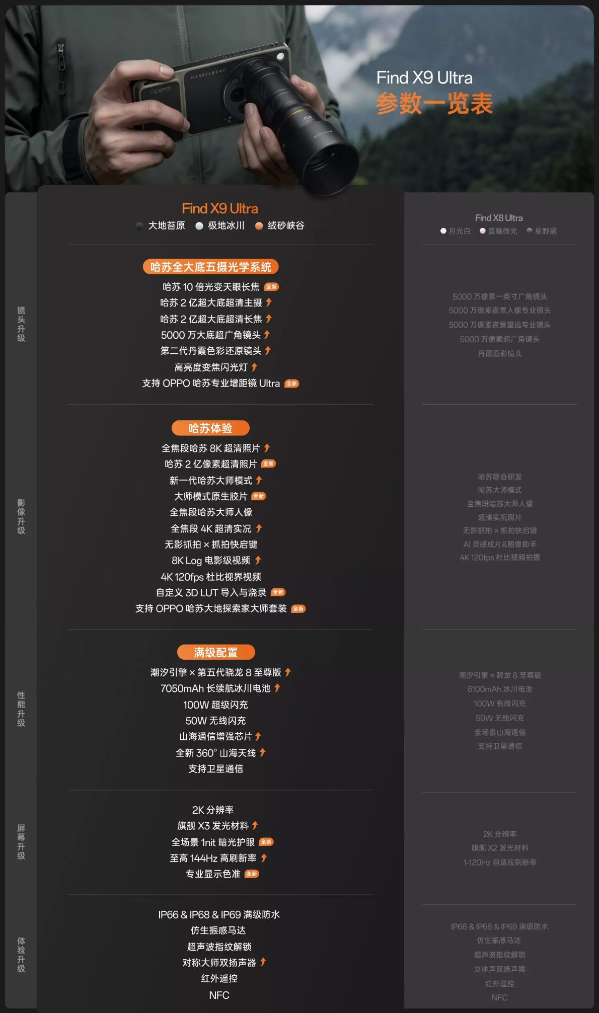 OPPO Find X9 Ultra發佈:雙兩億像素+雙潛望10倍變焦,7499起