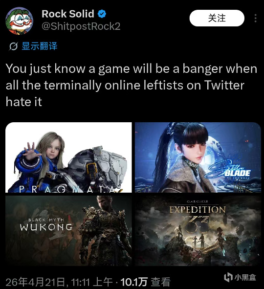 圖中被劃入他們 “仇恨清單” 的四款作品 ——《黑神話:悟空》、《劍星》、《識質存在》、《33號遠征隊》,完美契合了這套反向定律。它們有着高度一致的內核:堅守原生的美術審美,不刻意迎合西方覺醒文化教條,不強行捆綁意識形態敘事,全程把開發重心放在玩法打磨、畫面表現與原生故事塑造上,拒絕爲政治正確閹割內容、魔改角色人設。