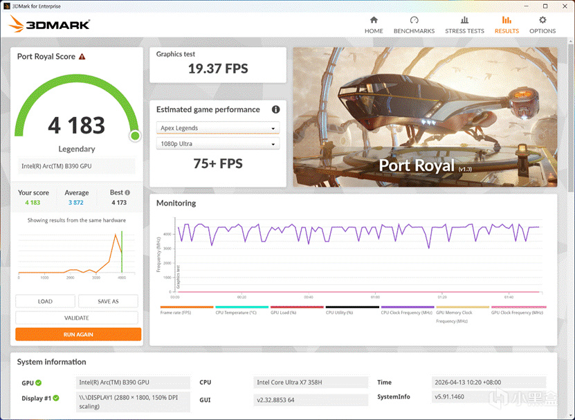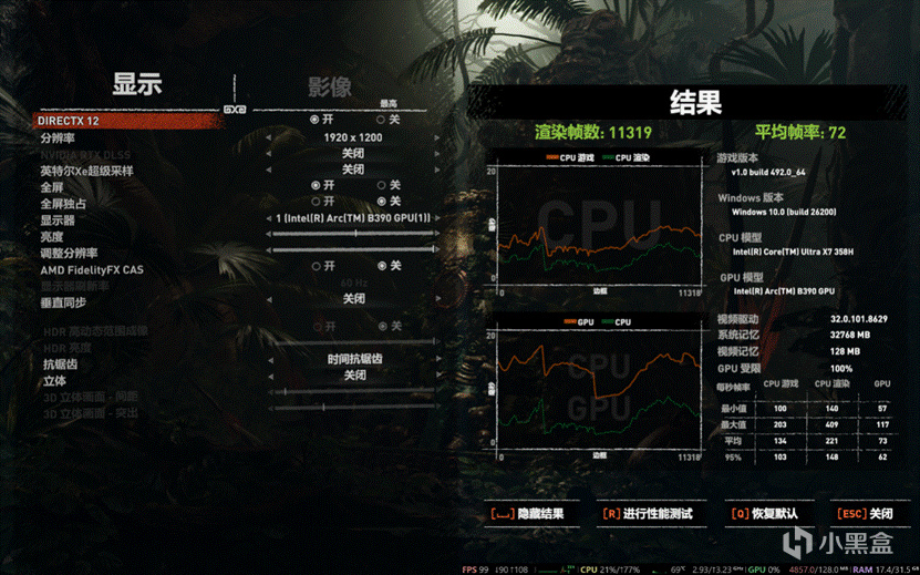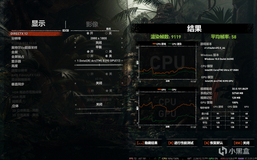 而实际游戏中因为REDMI Book Pro 14 2026的分辨率比较高,有2880×1800,还是16:10比例的,因此分辨率全开的话得打开XeSS才能实现高画质流畅游戏,但是这可是核显!! Intel官方说性能能追4050,至少实测是要比3050TI强不少的,这可是前几年游戏本的配置!