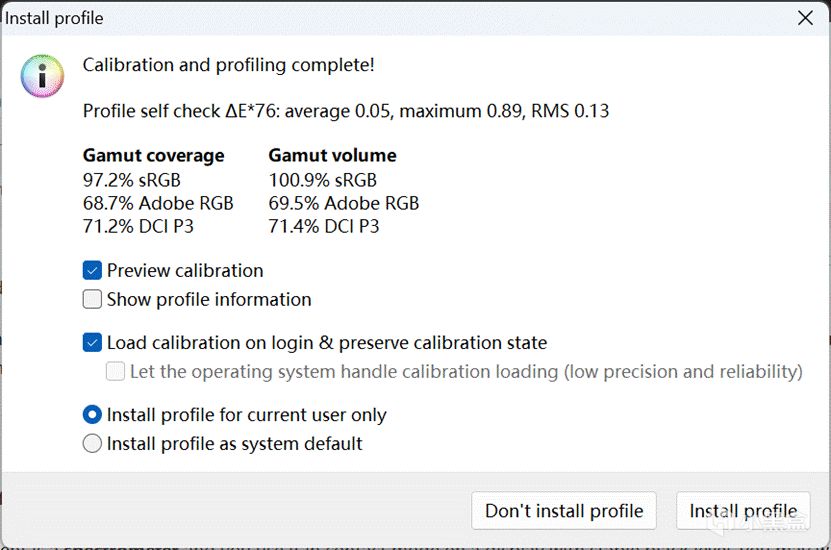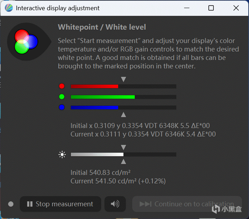 SDR下全屏100%亮度高达540,而且色温相当不错6350K左右偏移很小,HDR模式下亮度也是500以上: