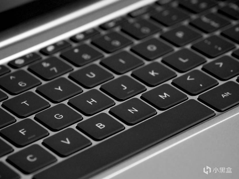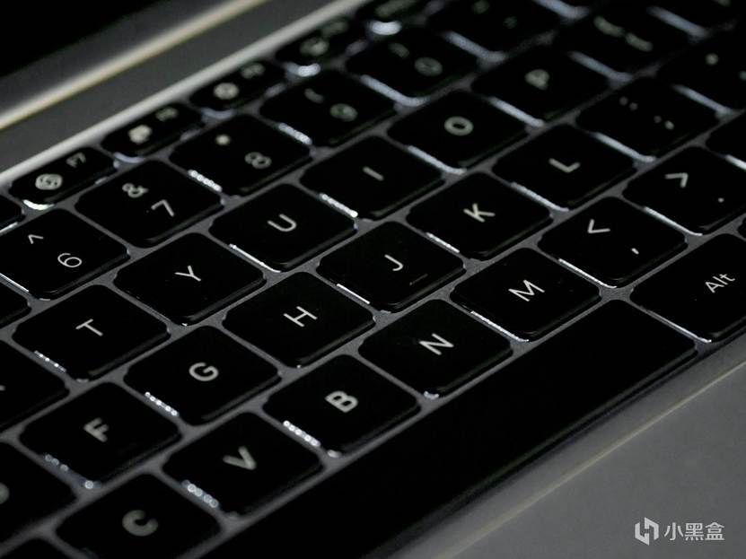 键盘是5排半+半方向键配列,属于轻薄本的标配了,键帽面积挺大,键程为1.3mm手感尚可,配有4档白色背光: