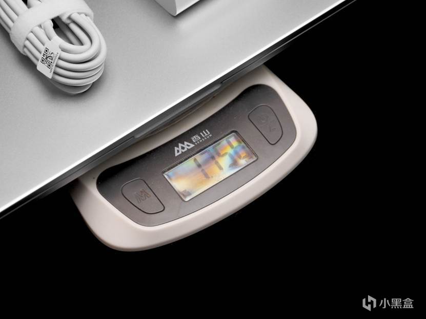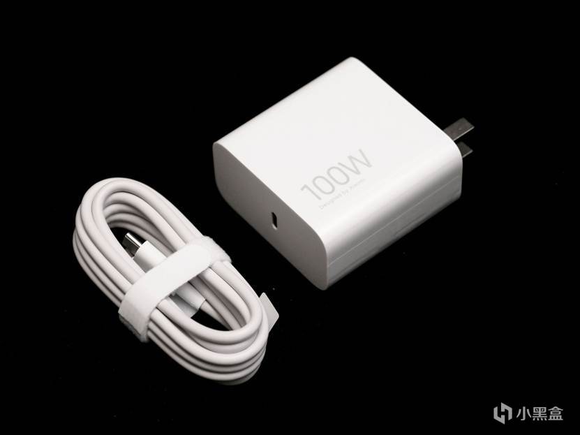 附带的适配器是C口100W的GaN头,线材自带收纳,很不错: