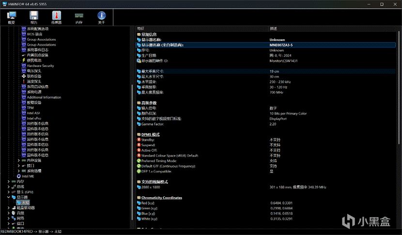 屏幕素质也是不错,这块屏幕MNE007ZA3-5来自华星光电,是一块2880×1800分辨率,支持30-120Hz可变刷新、DC调光+小米青山护眼,HDR400认证、10bit面板,除了色域只到100% sRGB有点遗憾之外其他的几乎都是顶级规格了,而且是雾面IPS LCD!