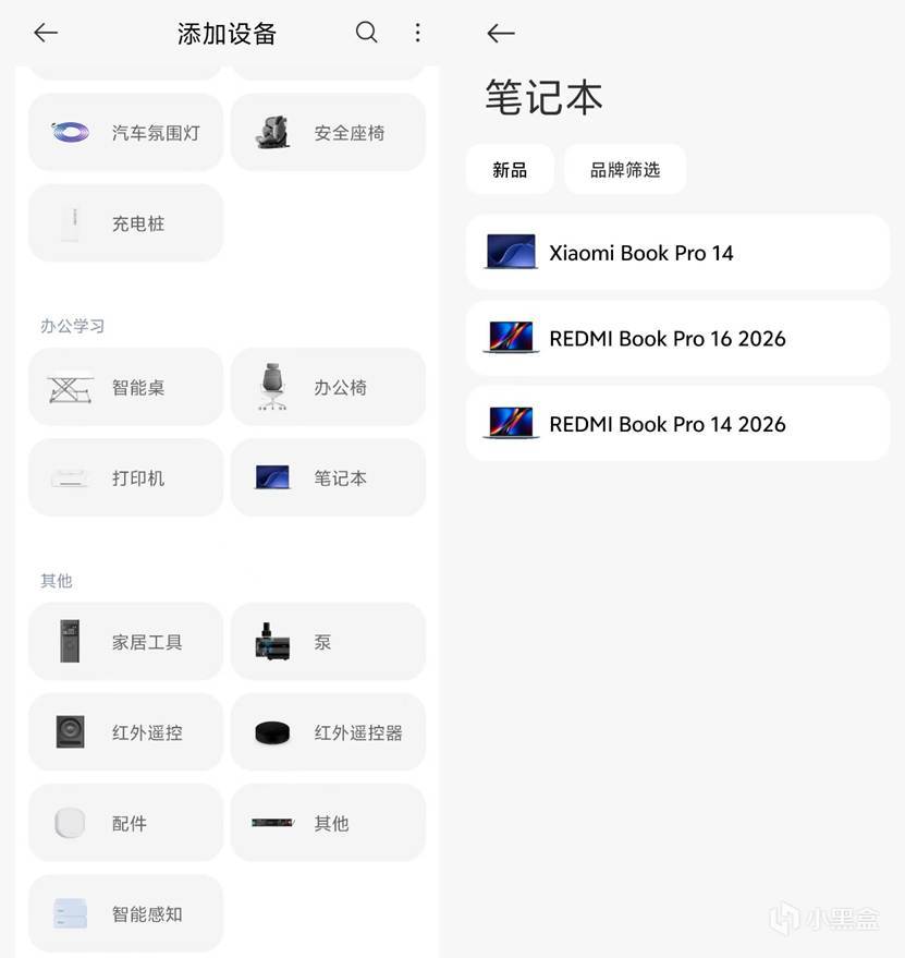 新版的米家已经更新了今年新的三款笔记本的互联支持,可以看到如今米家生态支持的设备已经非常非常多了,笔记本已经算是加入晚的了: