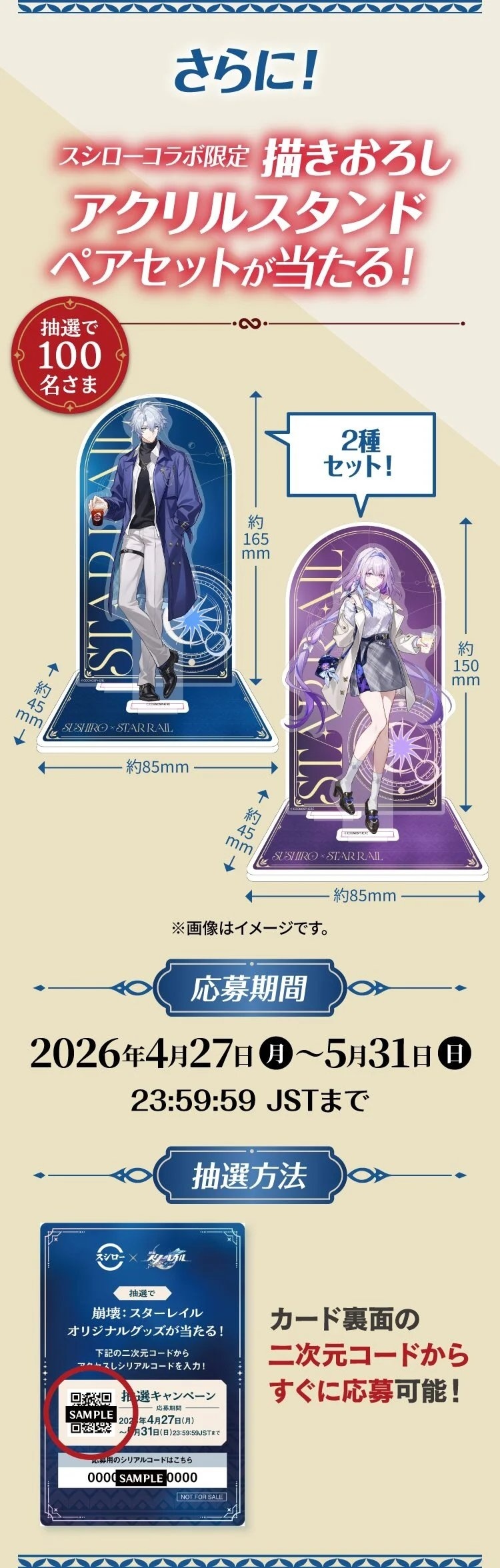 奖品:寿司郎联动限定全新绘制亚克力立牌套装,共抽100名