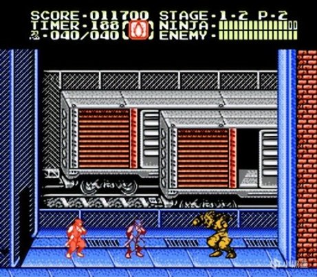 《忍者龙剑传》三部曲可以说是FC动作游戏最高代表之一,简单易上手的流畅操作,加上丰富的高难度关卡内容,给玩家带来了精彩的视觉享受,一些特殊技术的运用让人叹为观止,例如《忍者龙剑传2》中的火车场景,开发者巧妙利用了水平切割手段,让火车和远方背景以不同速度移动,让不具备多层卷轴能力的FC主机实现了立体化背景效果,同时在关卡中加入了大量人物对话场景,是FC时代少有的“电影化”叙事游戏,不过当年大部分小伙伴都看不懂日文,剧情具体讲了啥也不清楚,只能凭借过场动画脑补猜测,这也是小时候乐趣之一。
