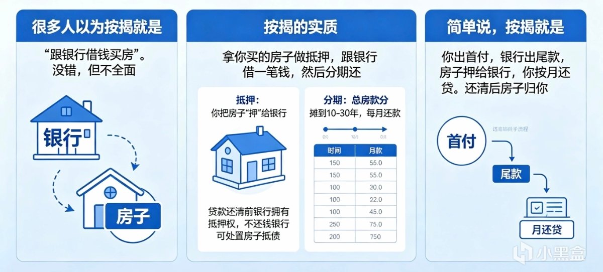 1.按揭不是“借钱”,是“抵押+分期”