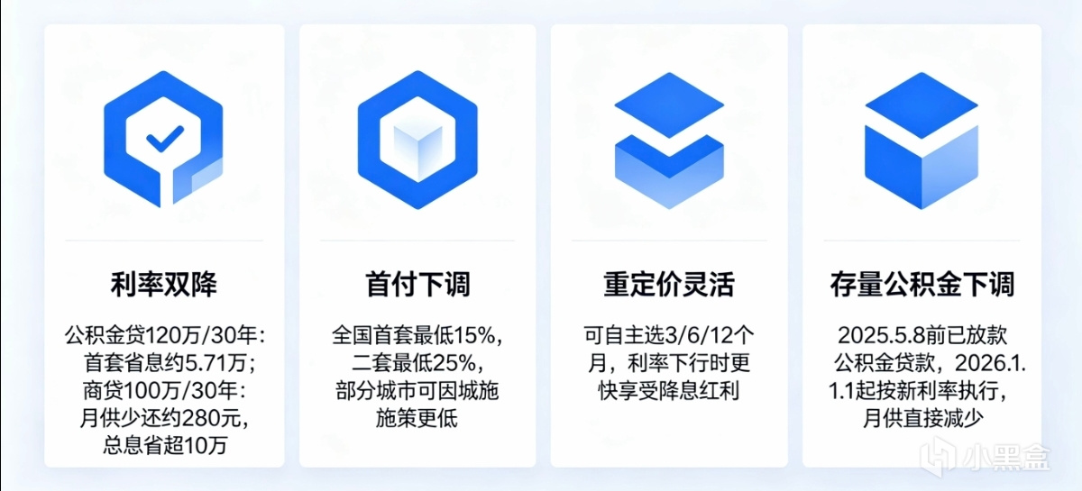 自2026年1月1日起,存量公积金贷款和部分商业贷款利率同步下调。以公积金贷款120万元、30年期为例,利率调整后,首套房可节省利息约5.71万元。以商业贷款100万元、30年期为例,月供减少约280元,30年累计少还利息超10万元。