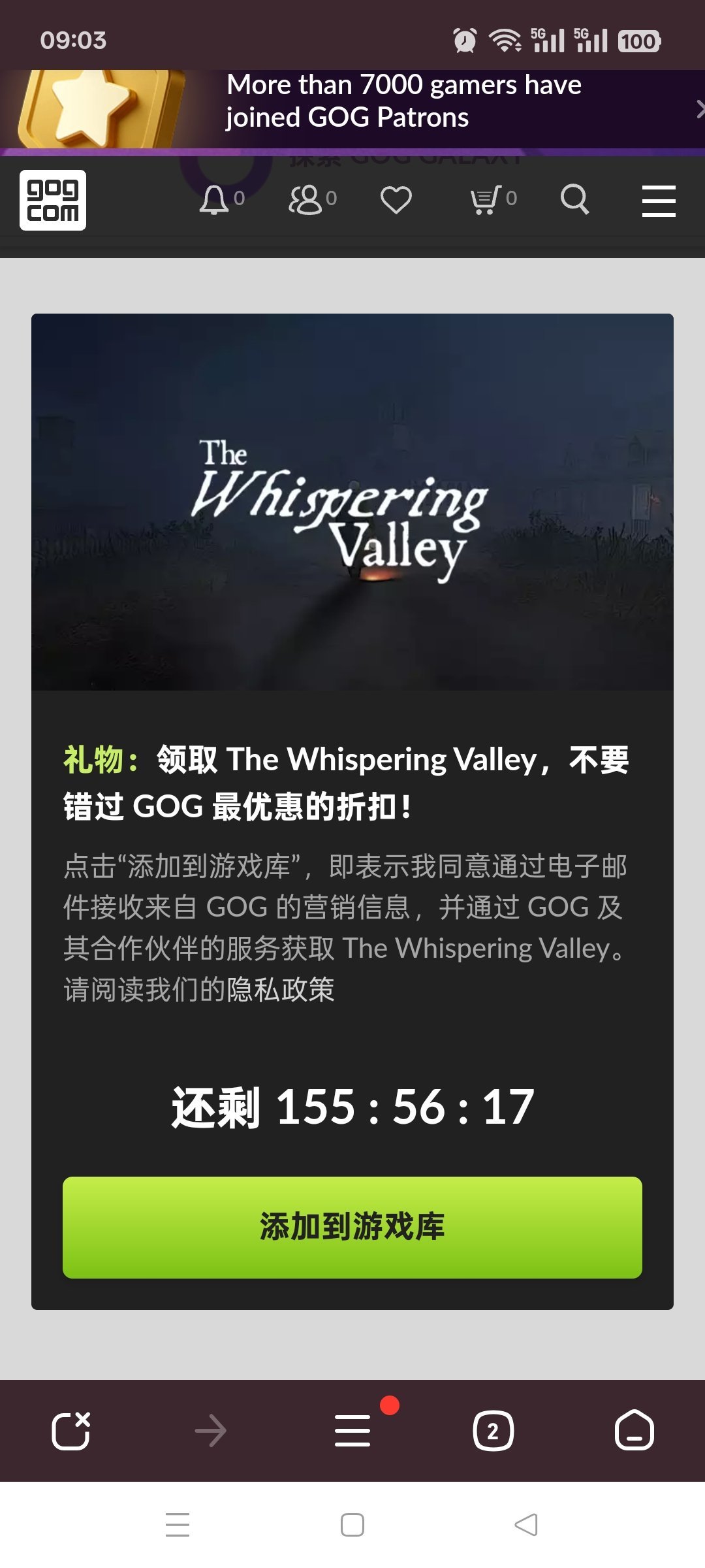 话说gog好久没有送游戏了,今天看到gog有一个游戏喜加一就赶紧给大家分享一下,今天送出的游戏是steam原价48元的The Whispering Valley