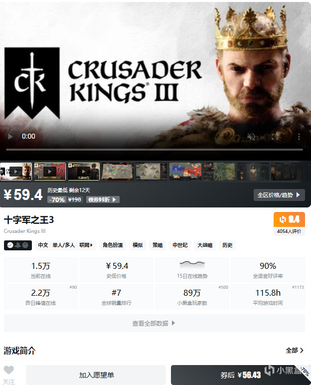 游戏史低化是盒友消费的客观需求!多个厂商旗下游戏史低折扣。众多佳作迎来史低!包括《二战前线合集》、《王国:两位君主》、《全面战争:罗马 重制版》在内的多款热门游戏均创下历史最低价,为玩家提供了绝佳的入手时机。