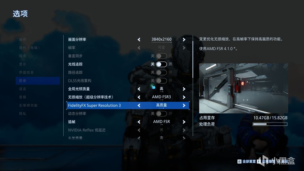 對於A卡來說,《識質存在》超分最新版本支持到FSR 4.1.0,通過驅動可直接從FSR 3升級,相比去年DEMO版本的4.0.3進一步改進了畫質和穩定性,不過這款遊戲的FSR 4.1.0並未提供Native AA原生檔,只有高質量、平衡、高性能和超高性能四檔。