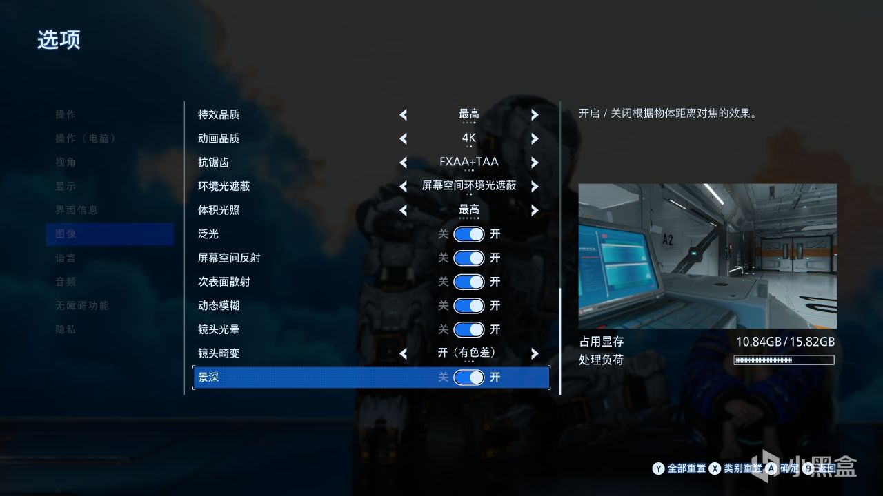 《識質存在》側重於極致的光影表現,所以它有獨立的全局光照、泛光、陰影緩存等選項,而《生化危機9:安魂曲》有獨立的粒子光照、體積霧分辨率等,用來營造氛圍塑造恐怖美學。