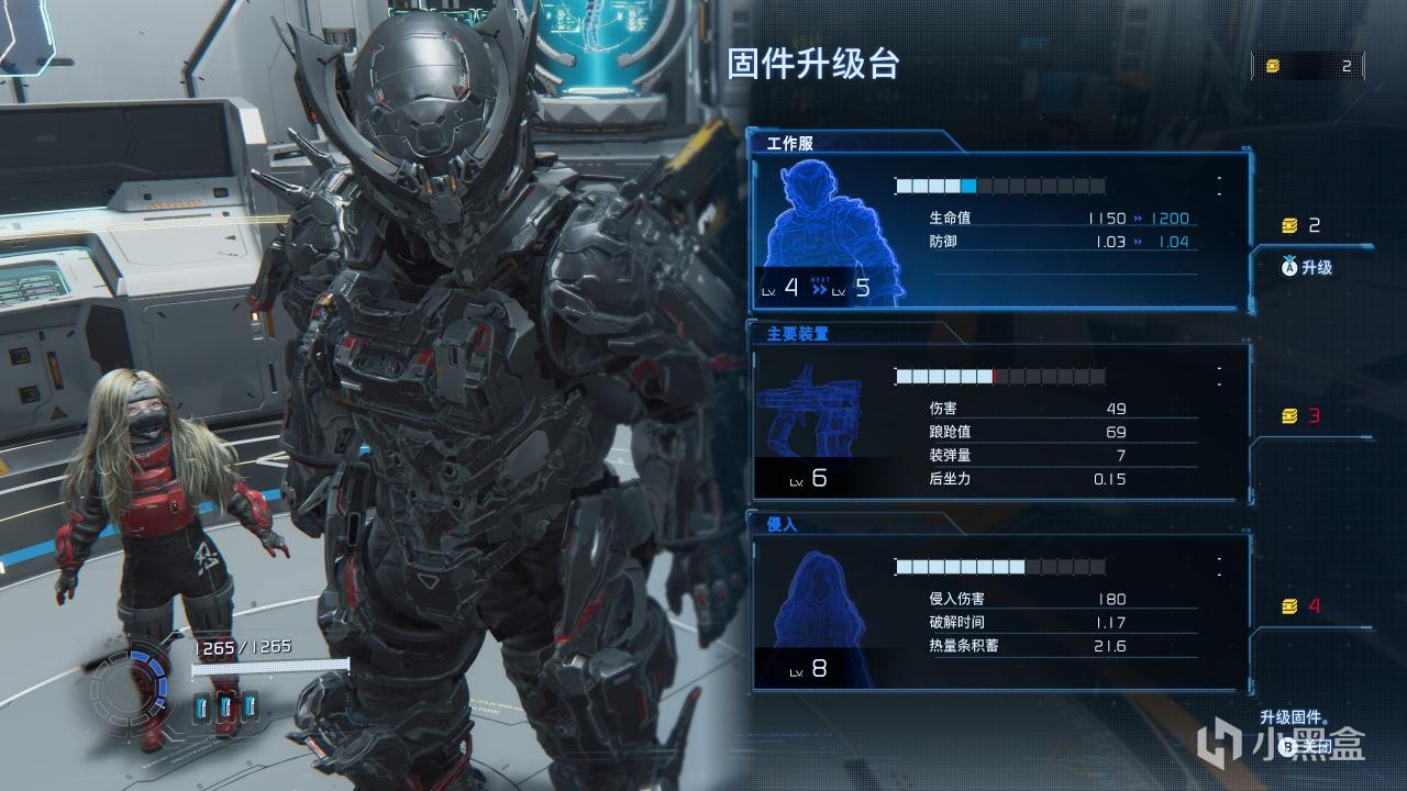 還有配件模塊和固件升級臺,相當於被動技能和屬性,這個沒什麼好說的按個人需求升級即可,個人偏向進攻型,所以主力會升級裝置&侵入屬性,以及配件模塊中的侵入條、模塊槽和節點槽,加血和防禦則是放第二位。