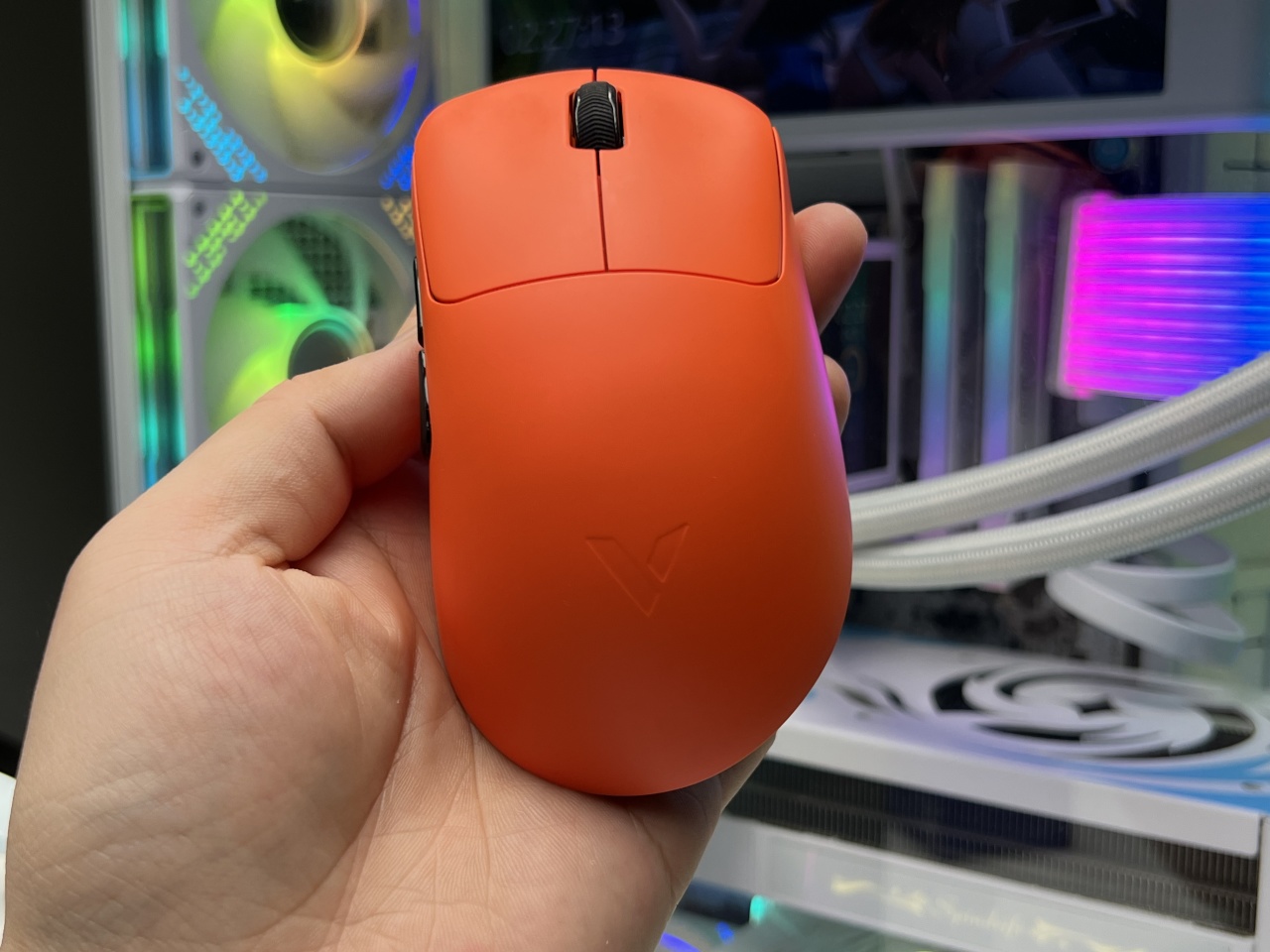 今天雷柏的這款VT3s焰影橙鼠標在模具上沒有像VT1二代和VT9二代做大刀闊斧的調整,它用的是目前CS職業選手鍾愛的類卓威EC模具,適配右手非對稱、適配中小手抓握和趴握。