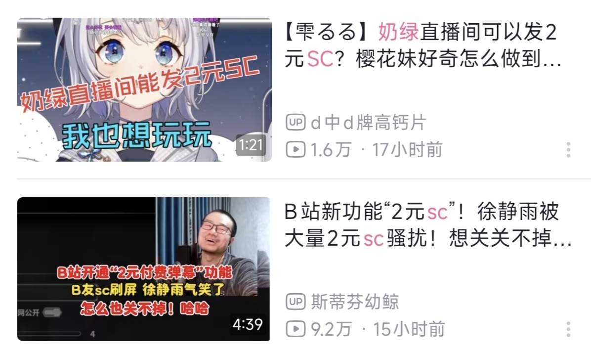 就在昨天b站推出了2块钱的sc功能,用户如果是该up的粉丝团可以只用2块就可以发sc,持续5秒