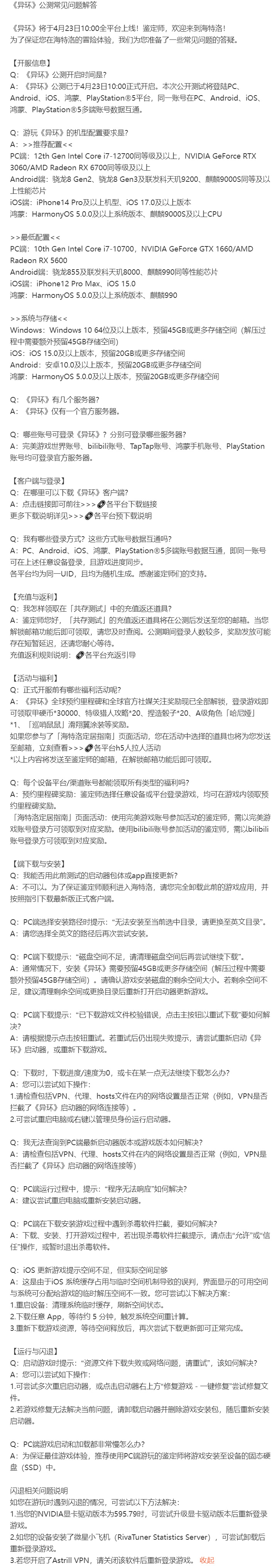 《异环》官方发布公测常见问题解答!