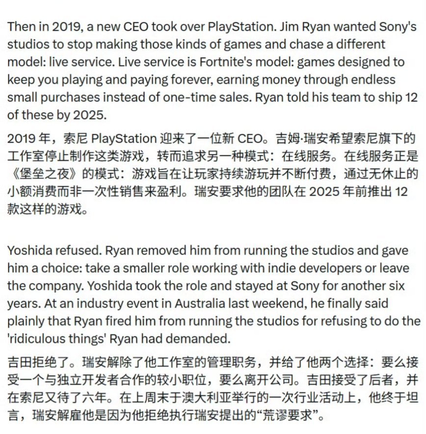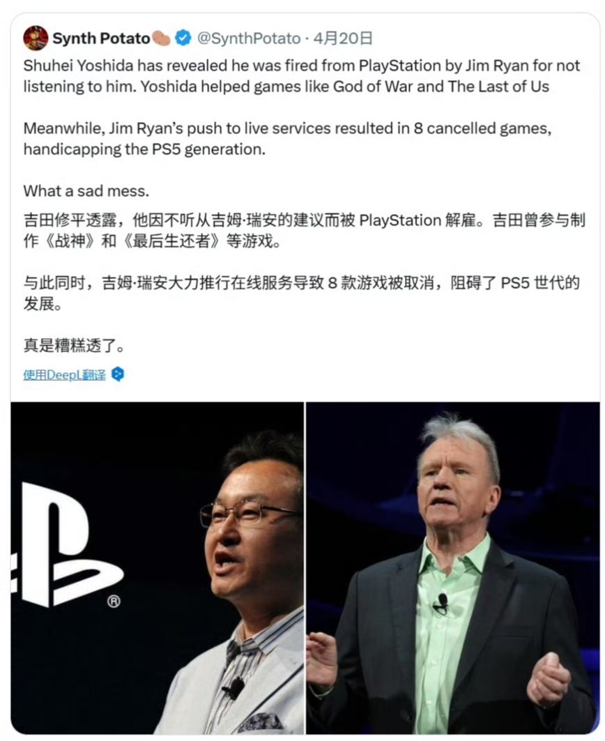 前PlayStation工作室总裁吉田修平近日在行业峰会透露,他早在2019年就因拒绝执行管理层全面转向“在线服务型游戏”的战略,而被解除工作室管理职务。