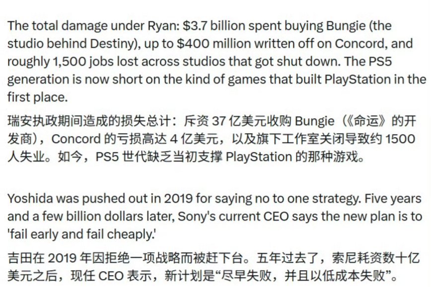 此次业务转型最终致使索尼旗下多家全资及合作工作室关闭,累计削减约1500个岗位,并产生了巨额的开发与收购沉没成本。