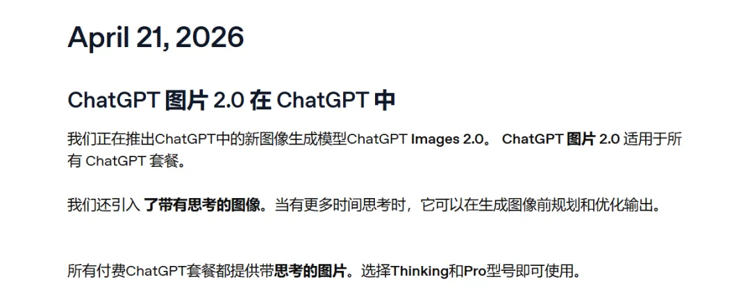 本次更新后,所有用户可以使用上最新的 GPT Image v2 模型,如果你是订阅了 20刀及以上的付费计划的用户,还可以用上带思考的完全体 GPT Image v2。