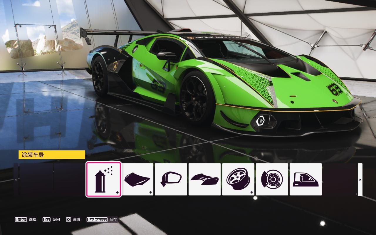 在车库主页依次选择"设计与涂装 - 涂装车辆 - 涂装车身",改变车身颜色并保存即可。