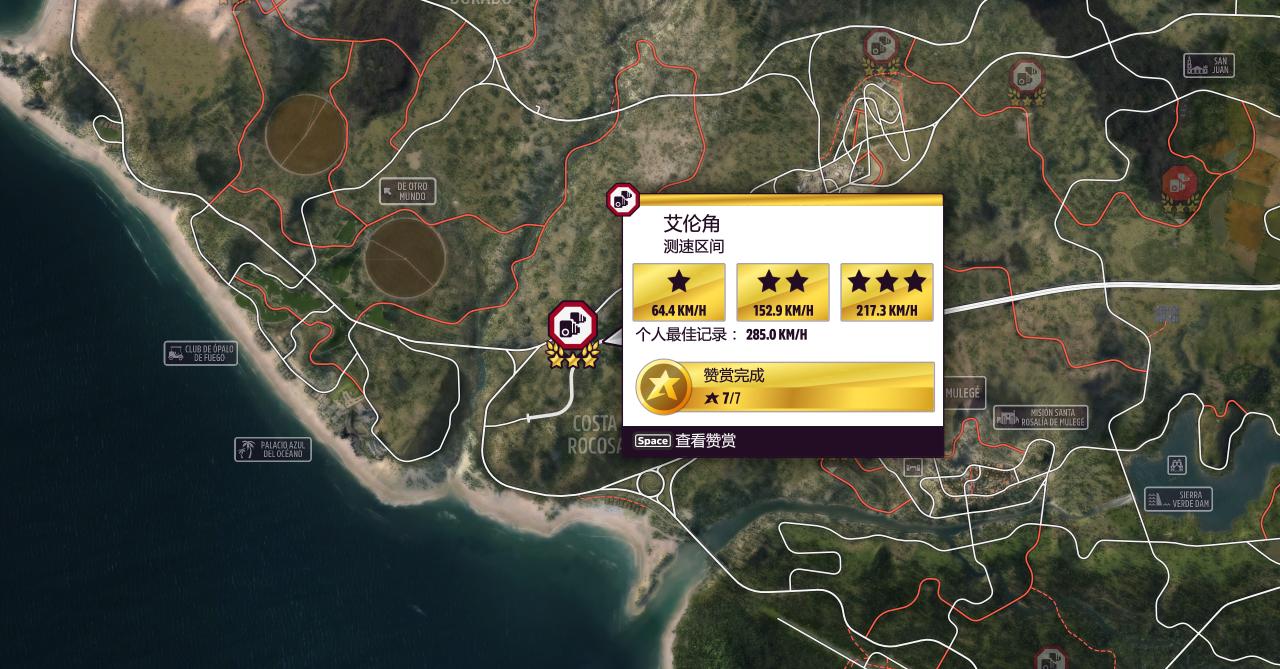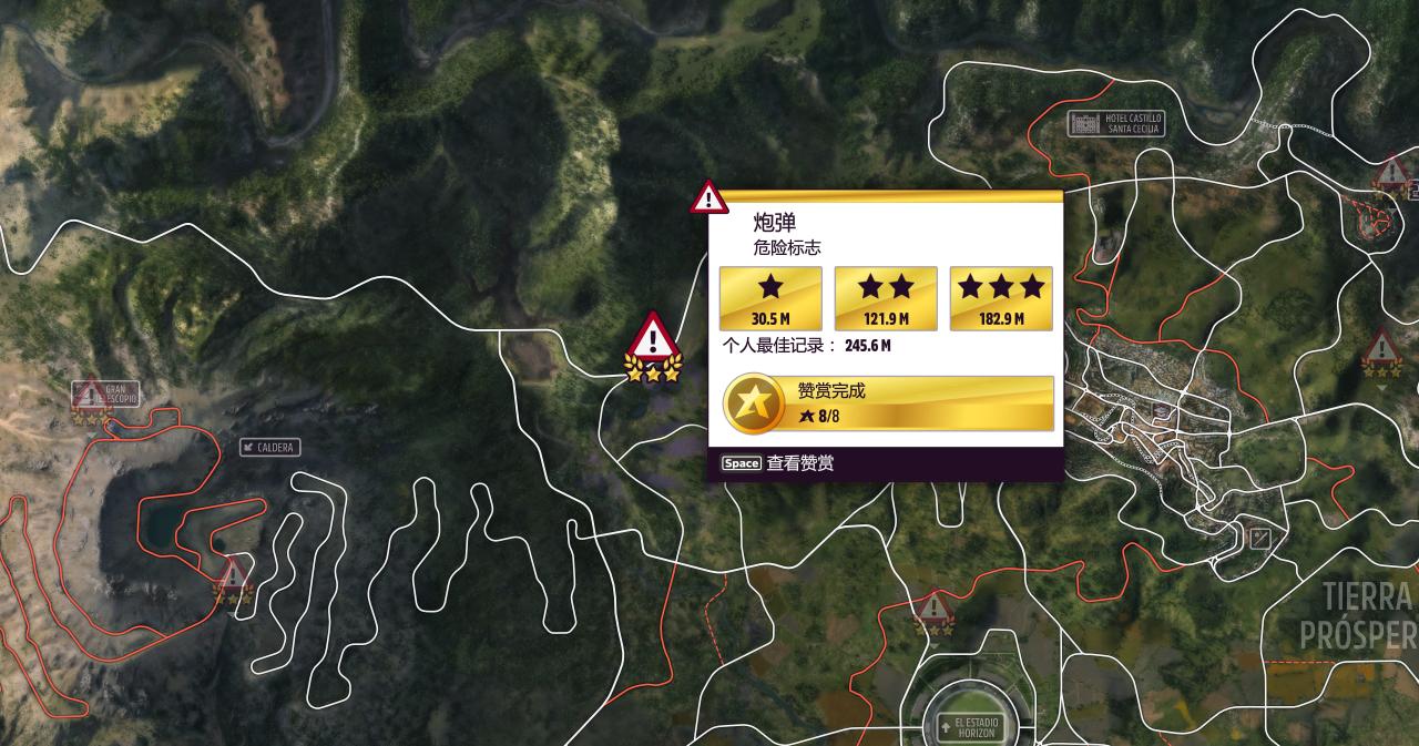 险象环生:非比赛阶段与其它车辆擦肩而过,自身速度不低于 80 km/h,且双方速度差大于 80 km/h(同向相减,对向相加)。