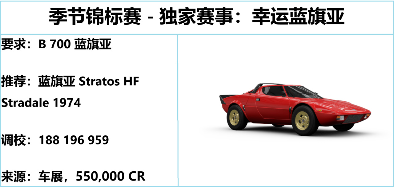 这辆活动限定的蓝旗亚可在后台兑换,完成锦标赛"幸运蓝旗亚"也能获得,前往户外拍照即可。