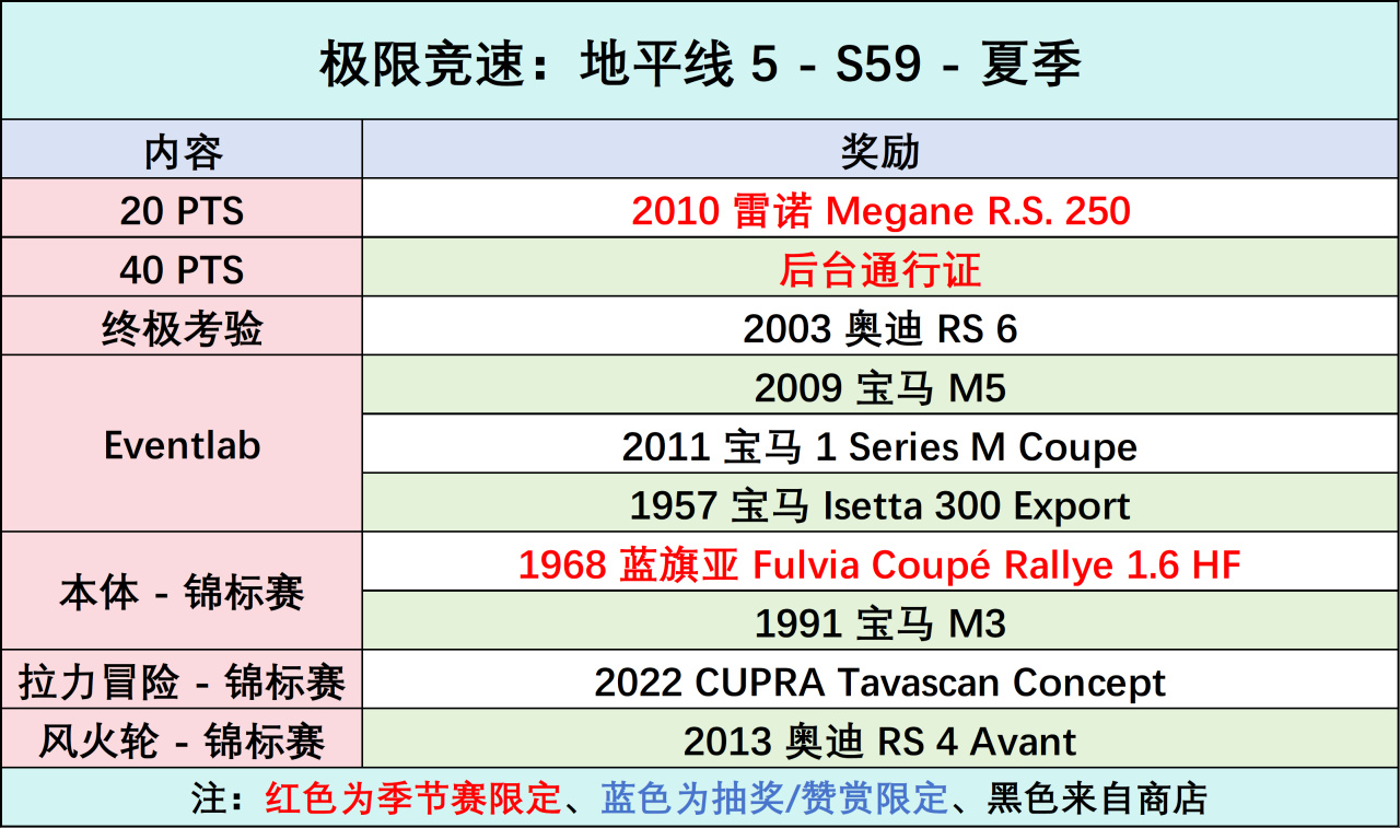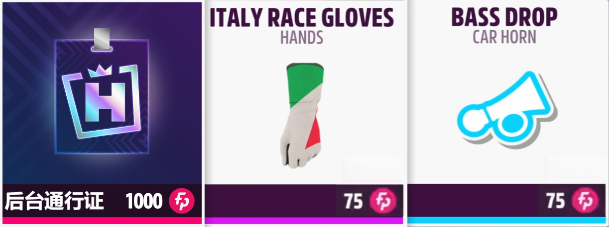 剩余物品:后台通行证、意大利赛车手套、低音震撼