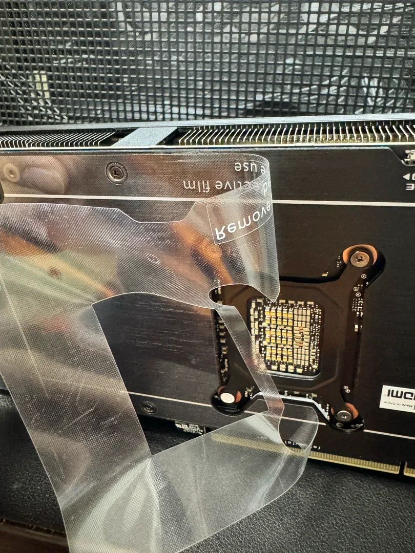 固态散热装甲是快拆卡扣设计,拆下后,把硅脂垫的塑料保护膜记得撕下来。