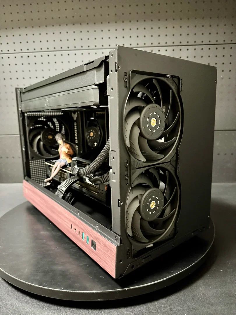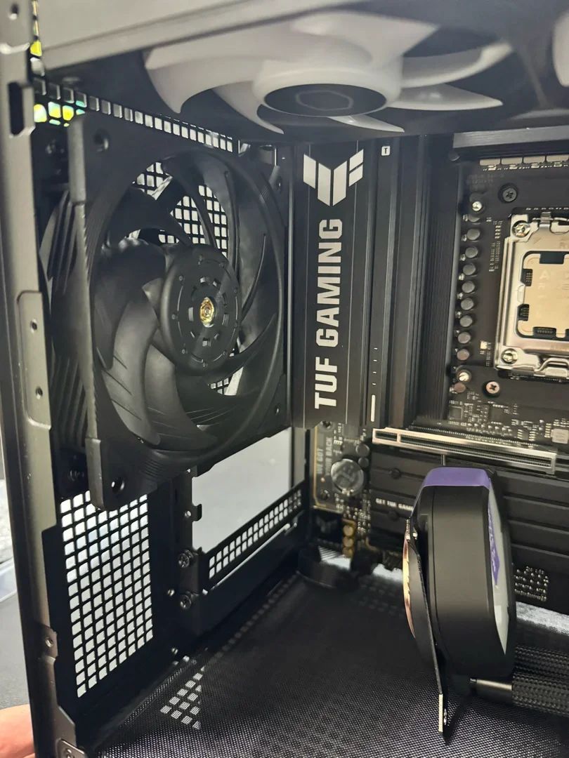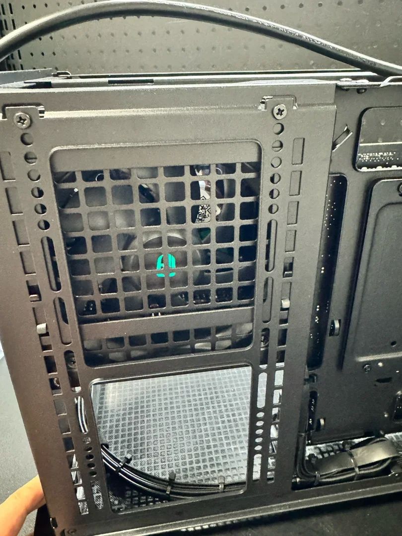 这是双风扇位,必选先安装风扇,再安装电源,否则电源会挡住风扇螺丝孔,无法拧风扇固定螺丝。
