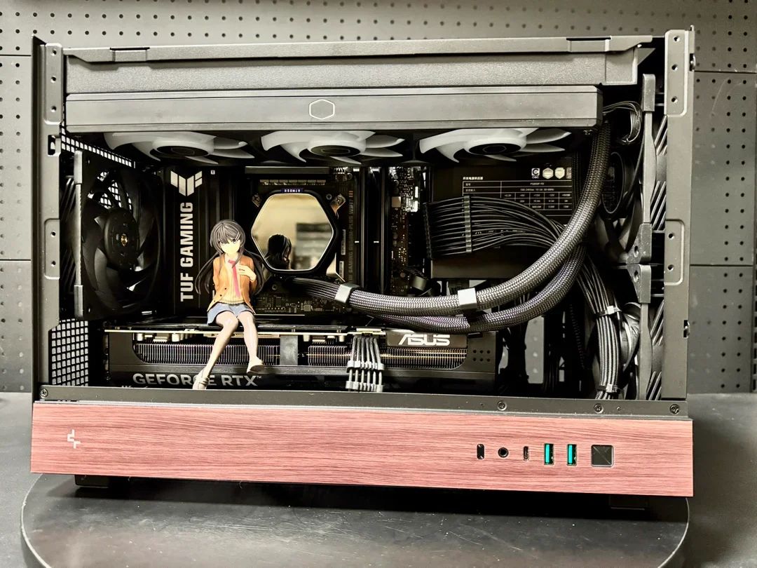 龙影二代我习惯冷头底进出水,这样水冷管在右侧,唯一缺点就是,冷头盖的LOGO是斜的。如果你是觉得不好看,可以把水管左右侧放,这样LOGO是正的。