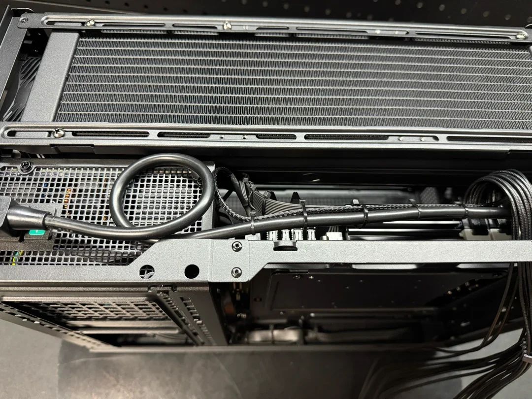 这里根底部电源仓的机箱不同,如果先装水冷冷排,电源是无法安装的。