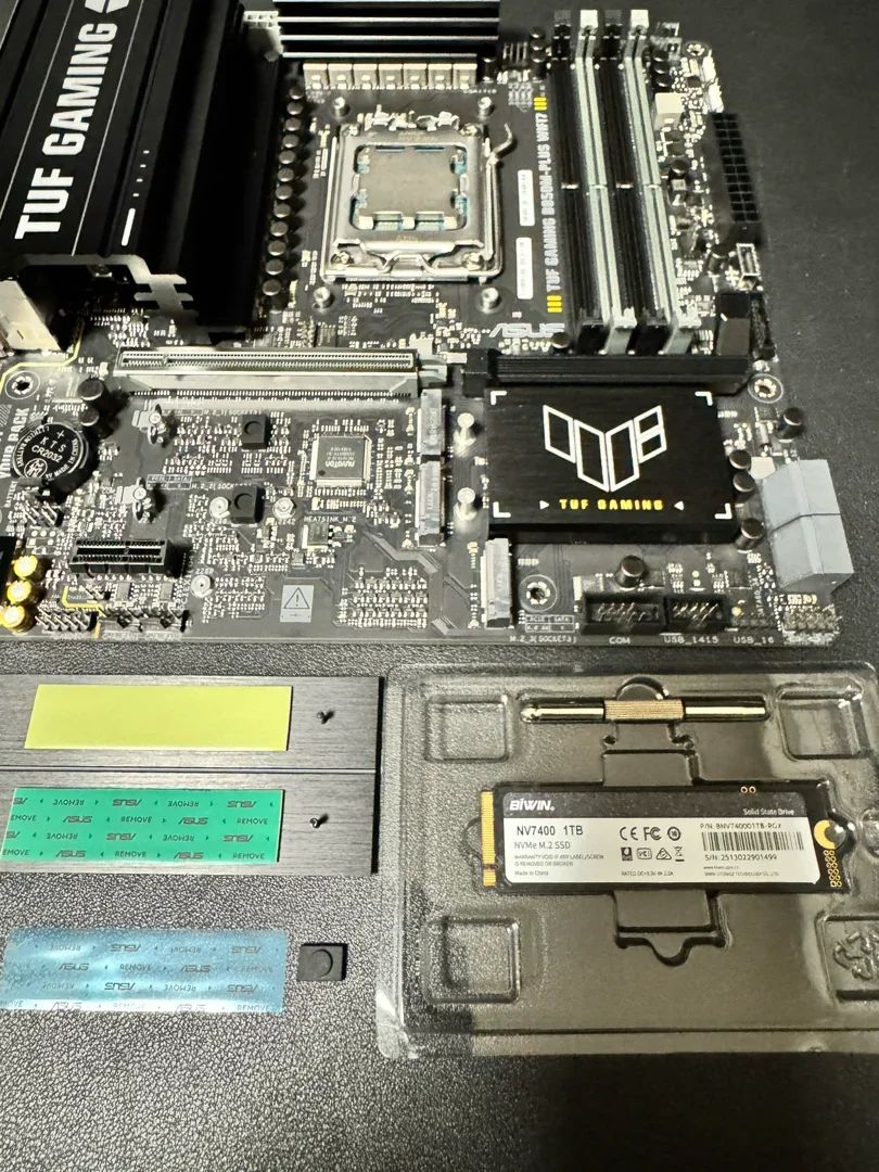 不同型号的主板固态位置底部也有硅脂垫,也要撕下塑料保护膜。