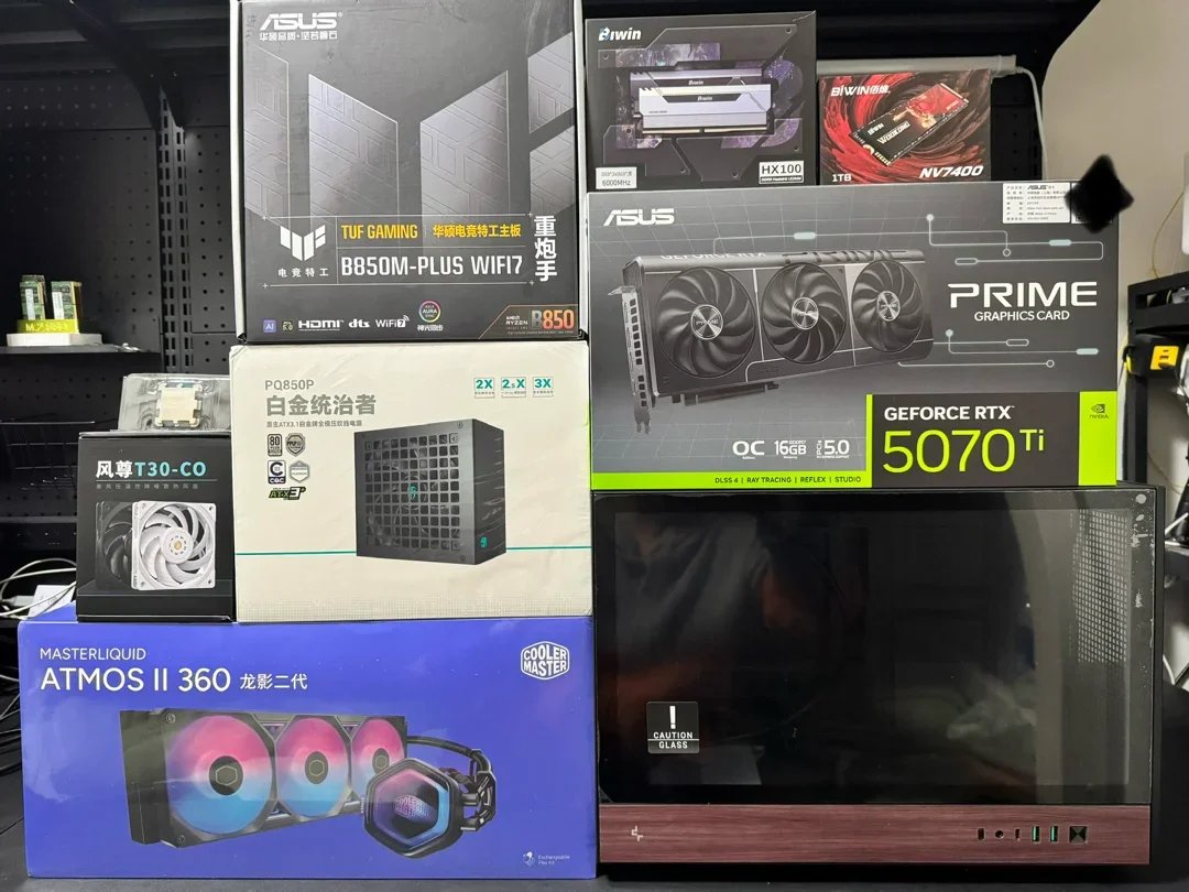 底部无风扇,多送一个显卡支架,5070TI支一下比较好。