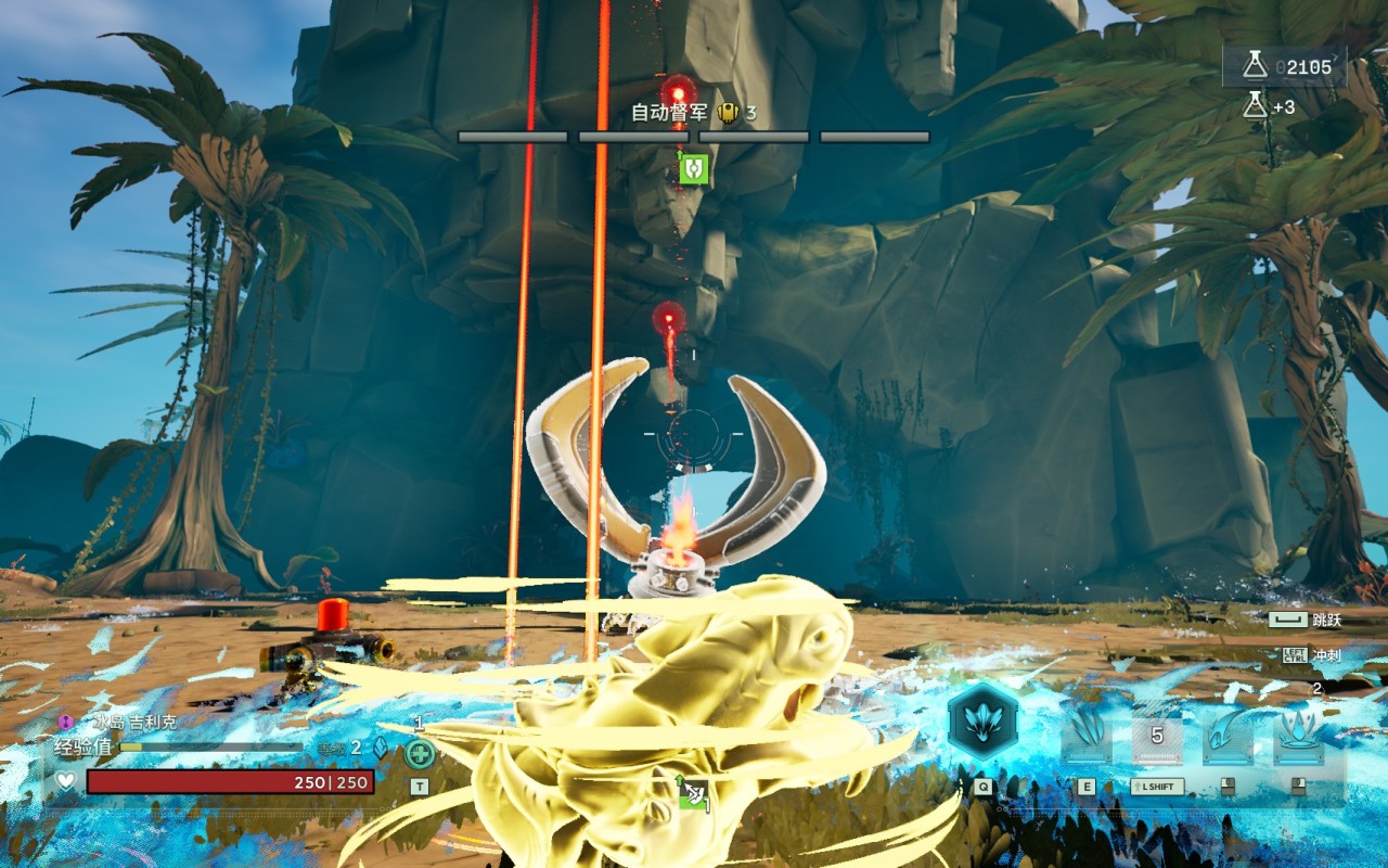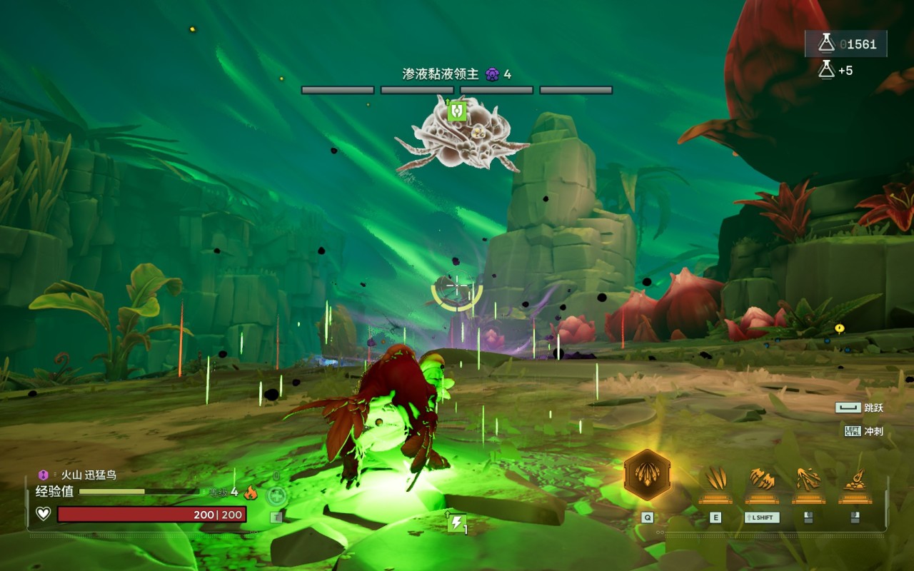 两只初始精灵“迅猛鸟”和“吉利克”兼顾近战动作和远程射击。迅猛鸟通过冲刺来快速位移躲避伤害,偏向远程放风筝射击;而吉利克则是生成格挡旋风,同时对周围敌人产生范围元素效果,偏向近战贴身搏斗。冲进怪堆里就是一顿大范围冰冻/火烧。