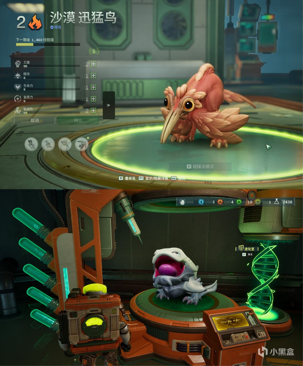 精灵能够不断进化,解锁不同的技能和形态模块。在试玩版中,两只精灵各拥有33个进化形态。