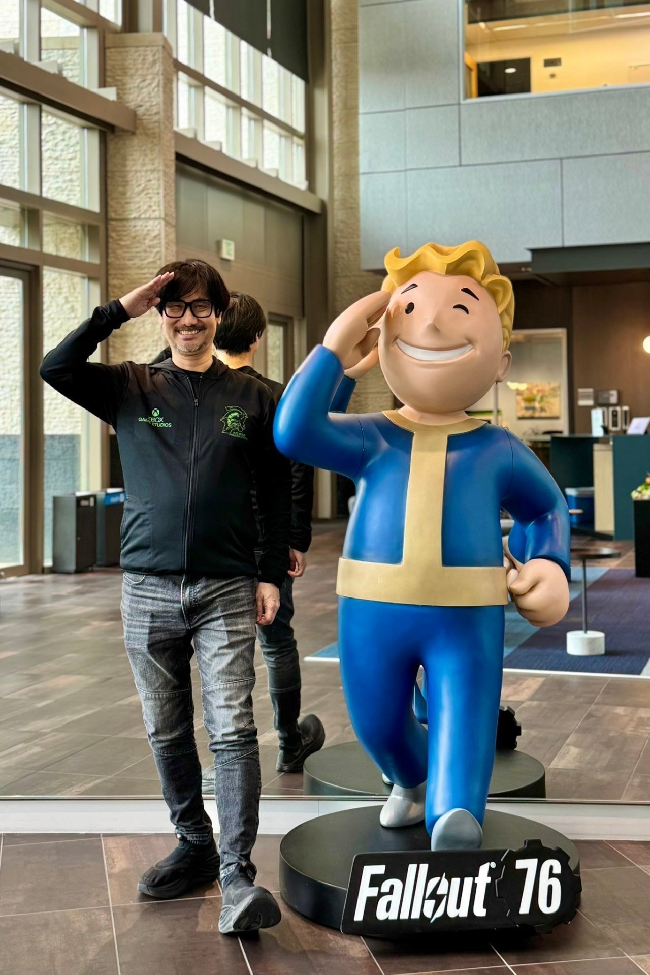 这次会面被视为项目进展的积极信号:****上任后第一时间与小岛会谈,显示Xbox对这一合作的重视。玩家猜测可能涉及游戏展示、营销推进,或甚至讨论Xbox下一代硬件的适配,如Project Helix等传闻。此外,小岛还在微软办公室与《光环》的Master Chief雕像、《辐射》的Pip-Boy等合影,增添了趣味性。