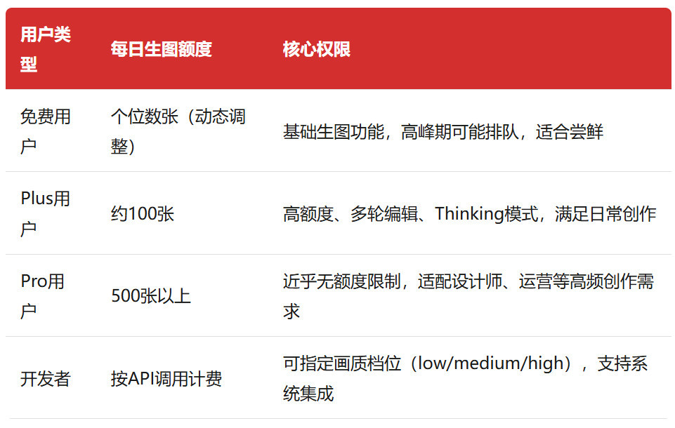 GPT-image-2对所有ChatGPT用户开放,不同套餐的额度和权限差异明显,大家可根据自身需求选择: