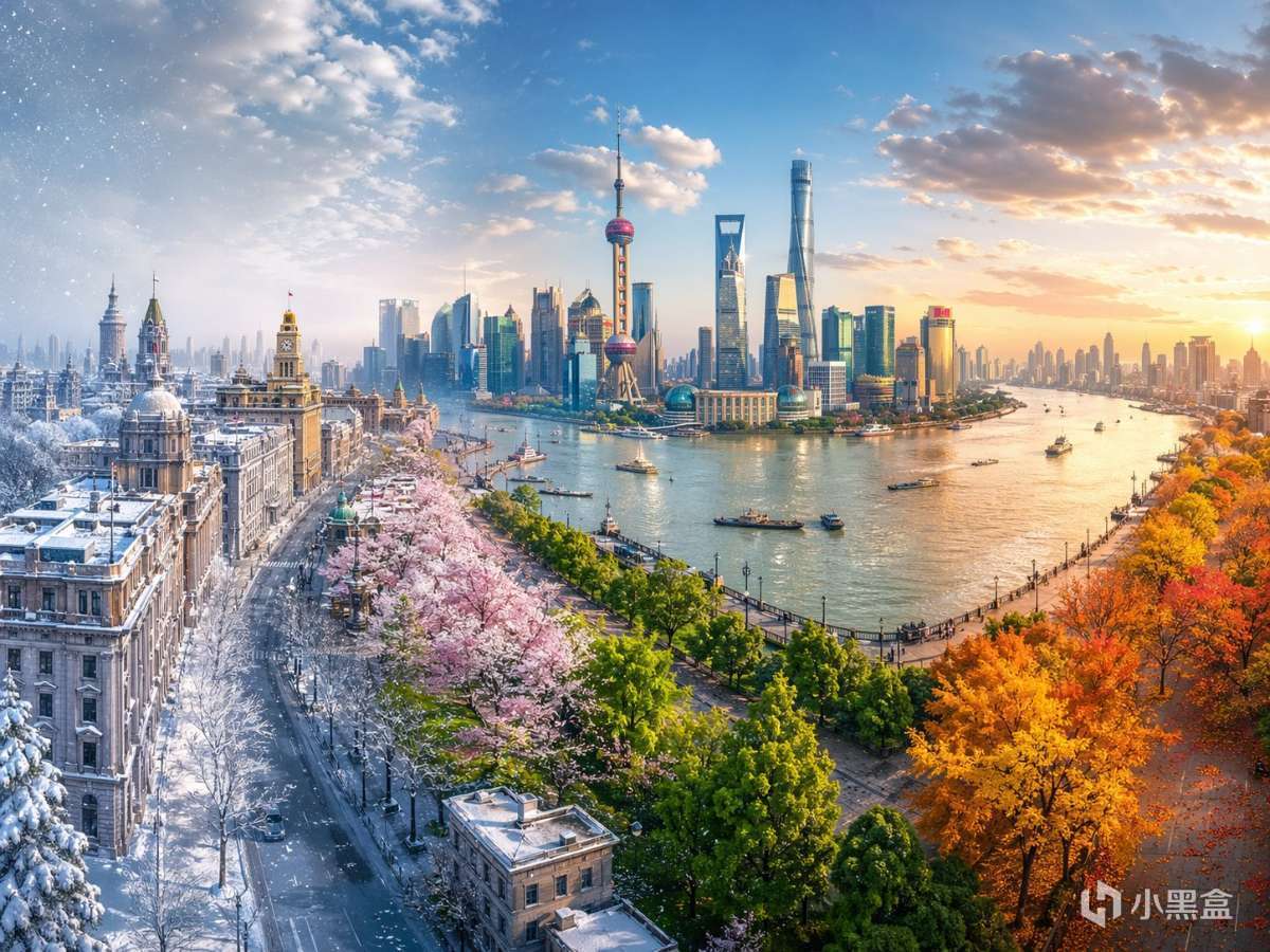 Scene:the historic Shanghai Bund waterfront looking across the Huangpu River to the futuristic Lujiazui district