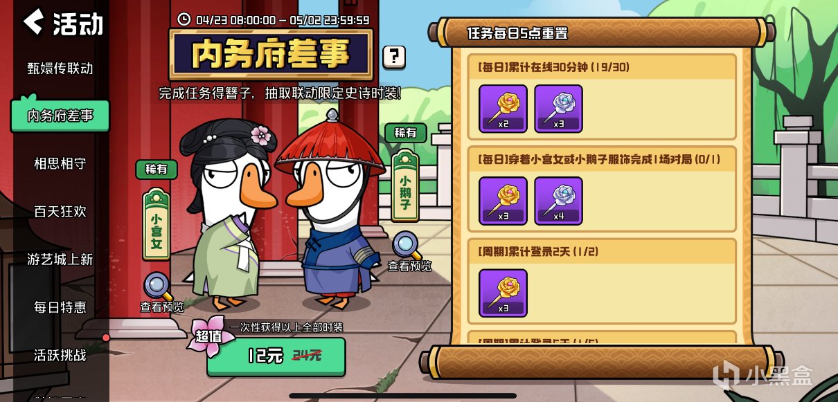 《鹅鸭杀》与甄嬛传联动活动,已于今日(4 月 23 日)正式开启。好久没玩了,最近出的时装也太多了,真是眼花缭乱。