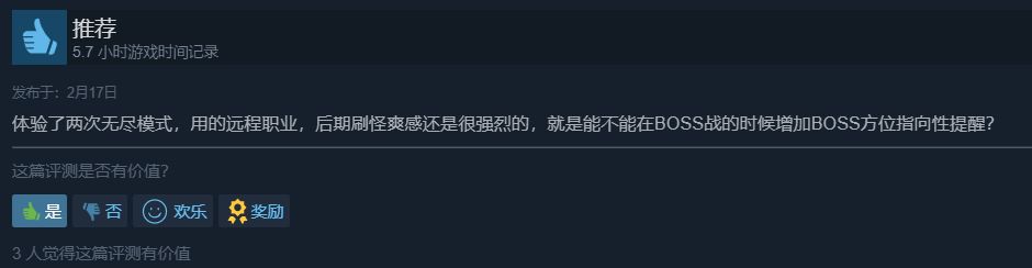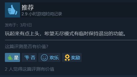 最近遊戲DEMO版還得到了非常多玩家們的認可,近30天還獲得了100%好評。還有挑戰無盡模式的100層的活動在評論區