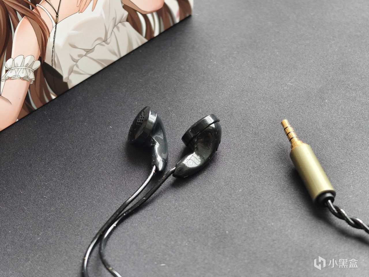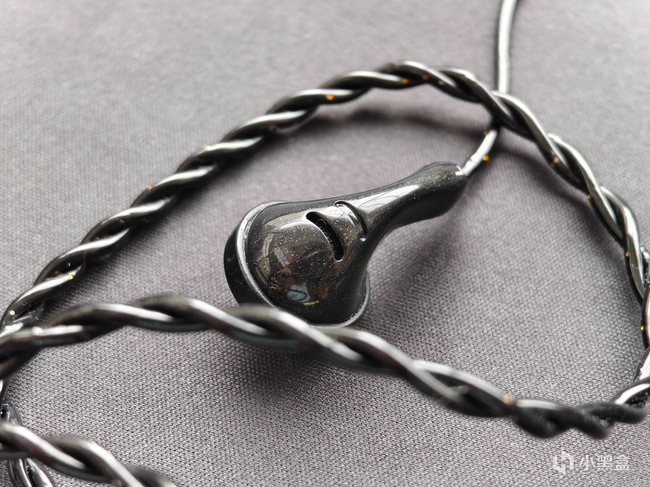 耳机本体表面采用了烤漆工艺,形制上是有点朴素,但纯黑底色上点缀的点点金粉让整款产品的质感上了一个台阶,整体观感虽然在我看来虽然显得不够大气,但也有几分精巧。