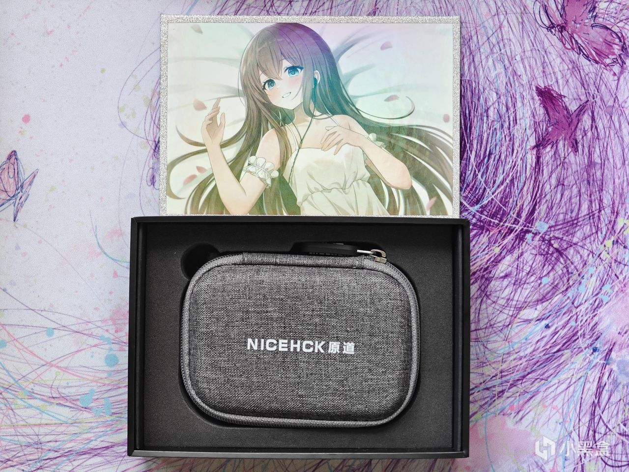 打开原道B80的包装盒,里面有一张非常精美的柒酱色纸(可爱捏),以及一个看起来比较精致但也平平无奇的耳机收纳盒。