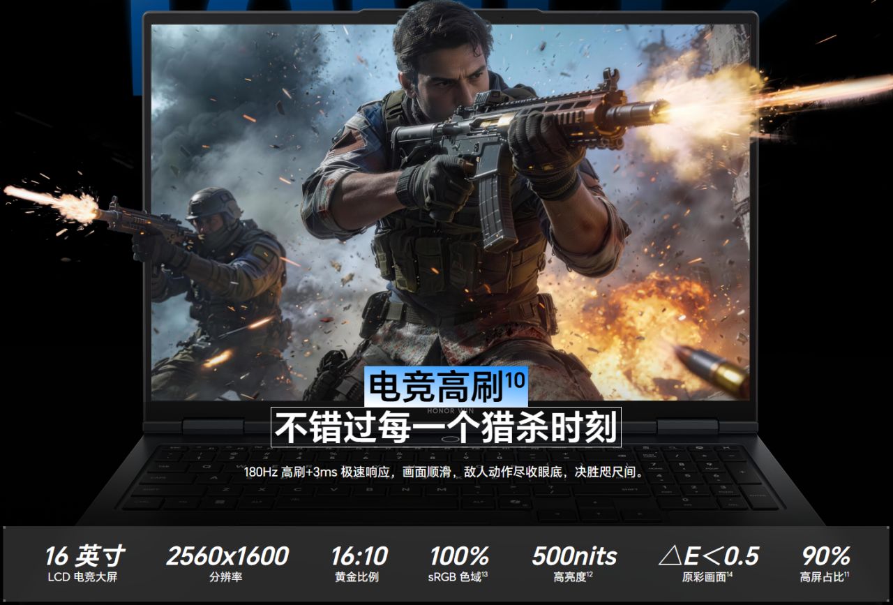 16英寸 2.5K 180Hz IPS屏,500nit亮度