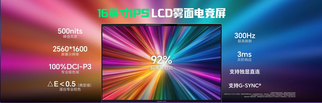 16英寸 2.5K 300Hz IPS屏,500nit亮度