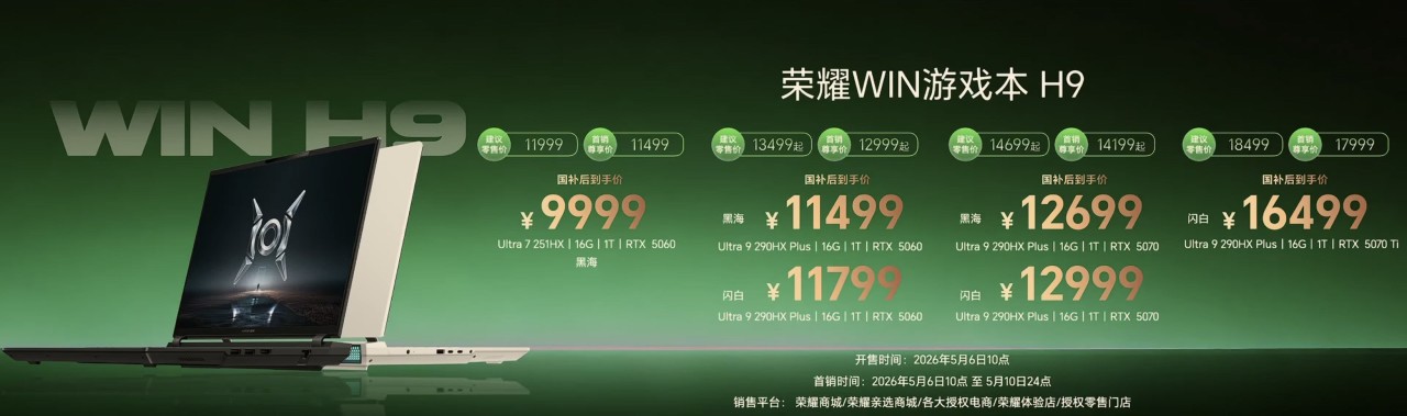 U9 290HX Plus+5070Ti版本:原价18499元,首销+国补 16499元