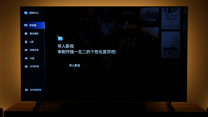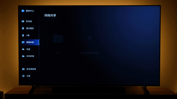 进入媒体中心后,可以外接U盘/移动硬盘,我们通过添加网络共享设备,实现内网的文件共享。