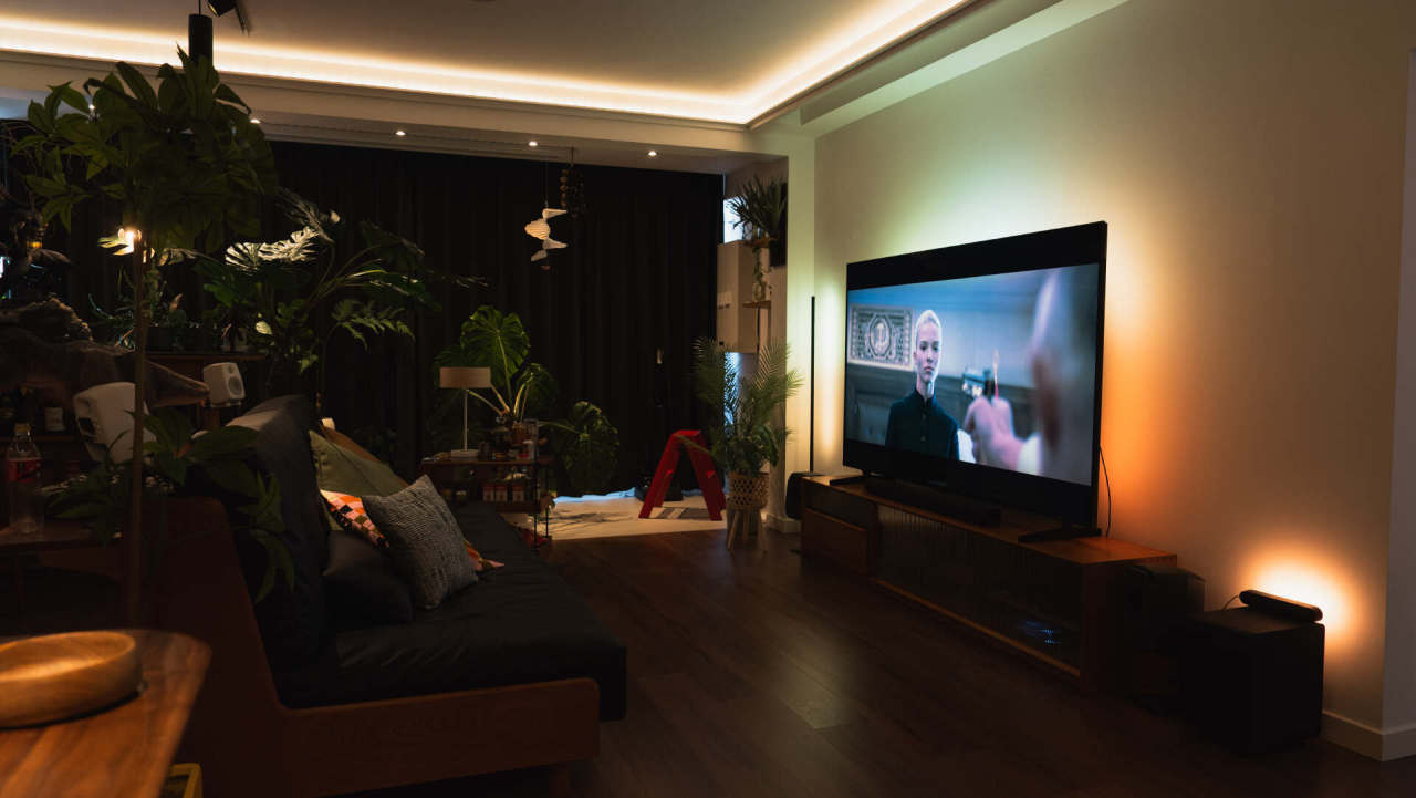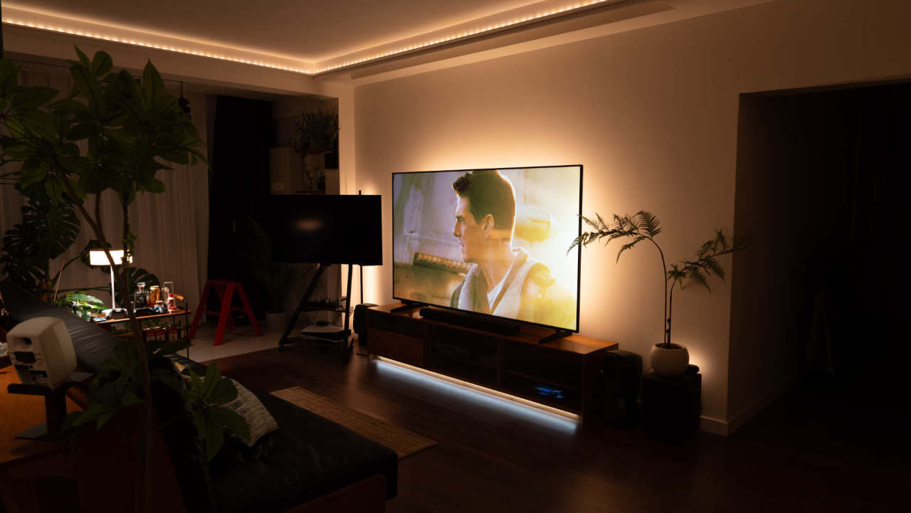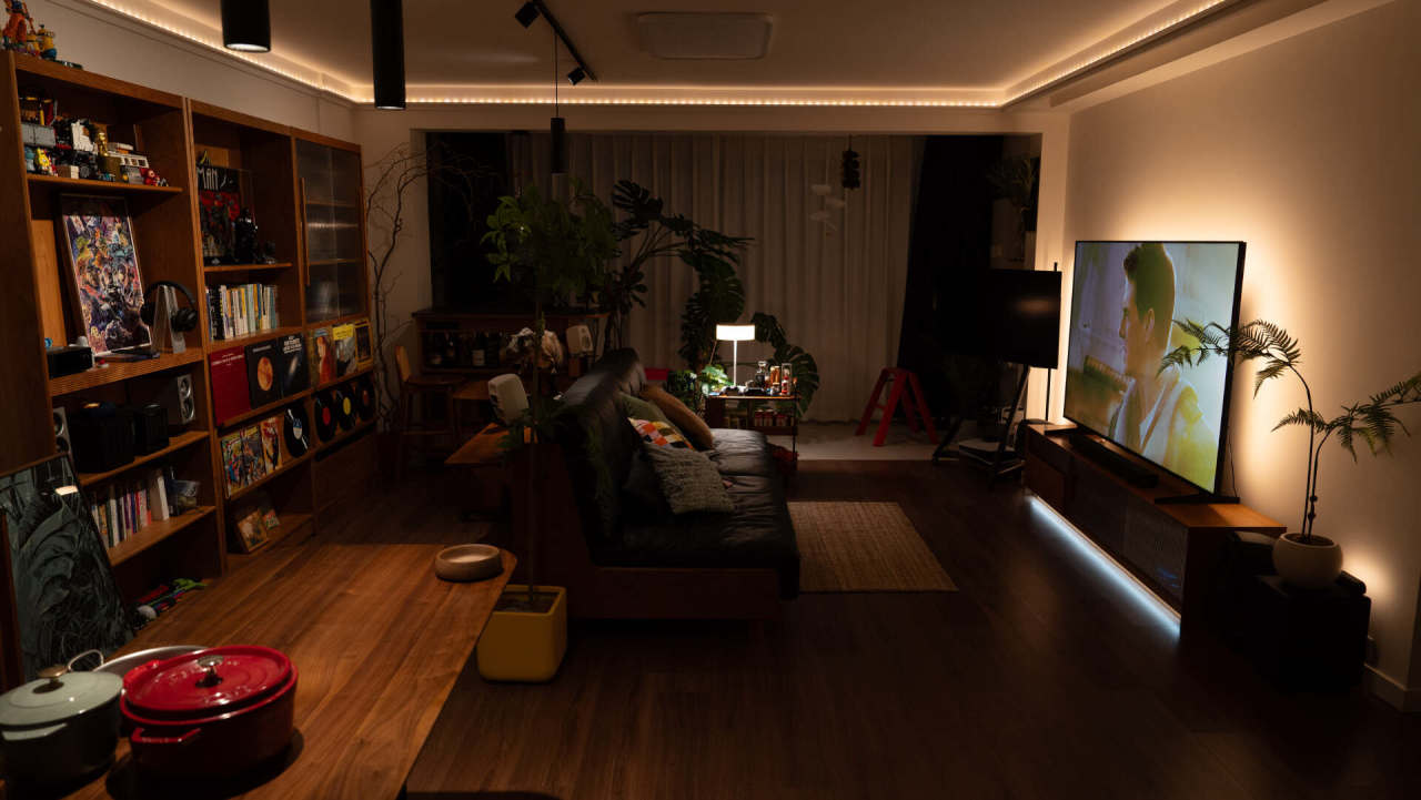 峰值亮度高,一方面用于HDR内容的呈现,还一个最基本的需求是在明亮背景下能展现出不错的效果,我拍摄时间是正午,全屋基本是明亮的感觉,确保屏幕不过曝降低了亮度,电视的观感还是要强很多的。